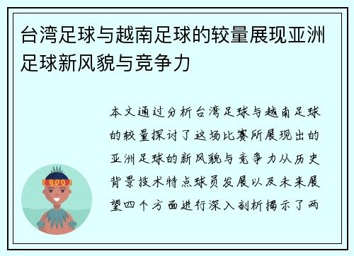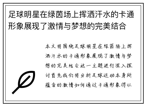 中国足球作为一项备受关注的体育运动,近年来在国内外赛场上涌现出了一批优秀的足球明星,他们不仅在技术上展现了卓越的才能,更在推动中国足球发展、提升国家形象等方面发挥了重要作用。本文将从四个方面对中国足球明星进行详细盘点:他们的职业生涯成就、国际赛事表现、对青少年足球的影响以及他们在社会责任上的担当。通过这些方面,我们将全面了解这些足球明星们如何在国内外赛场上取得辉煌成就,并探讨他们所带来的深远影响。...