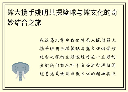 姚明,这位中国篮球界的传奇人物,不仅在职业生涯中取得了辉煌的成就,更在爱情和婚姻生活中展现了另一种幸福。本文将从四个方面详细揭秘姚明的爱情旅程与婚姻生活,探讨他如何从篮球场走向家庭,经历幸福的转折。首先,我们会回顾姚明的初恋故事及其对他人生观的影响;接着,将深入分析他与妻子叶莉之间相知相爱的过程;然后,探讨他们共同面对婚姻生活中的挑战和成长;最后,总结姚明在家庭生活中所找到的平衡与快乐。本篇文章旨...